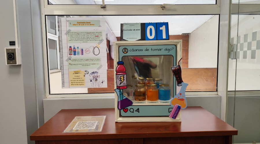Un experimento liderado por la Unidad de Salud Dental, de la Dirección de Salud y Bienestar Estudiantil-DAE, se hará presente a lo largo de todo noviembre en el 3er piso del hall universitario. Una demostración práctica denominada “El Dr. Senku investiga: ¿Qué le hacen tus bebidas favoritas a tus dientes?” comparó el efecto de cuatro líquidos sobre el “esmalte” usando huevos como modelo: bebida energética, bebida gaseosa, bebida isotónica y agua.
