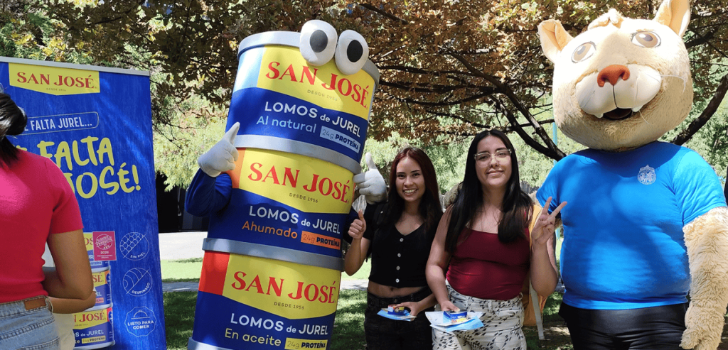 Esta actividad se llevó a cabo en el Campus San Joaquín, el 18 de marzo, con el objetivo de promover el consumo de alimentos ricos en omega 3, específicamente el jurel. La instancia se desarrolló en conjunto con la empresa San José, cuya mascota Jurelín estuvo animando la actividad junto a Pangui, la querida mascota de la UC.