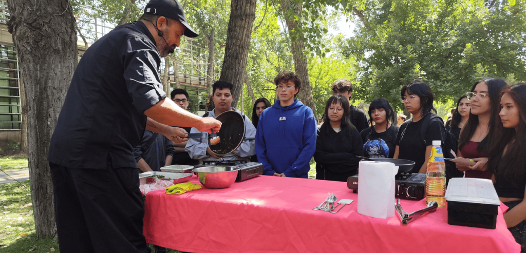Uno de momentos clave de la actividad El poder del Omega 3 fue cuando el chef de la carrera Nutrición y Dietética, Sebastián Tobar, cocinó en vivo ante la atenta mirada de decenas de estudiantes. Sebastián preparó croquetas de jurel y chupe de jurel, dos platos muy sencillos de cocinar, económicos, nutritivos y deliciosos. Luego, se hizo una degustación, así que cientos de jóvenes comprobaron in situ las virtudes de ambas preparaciones.