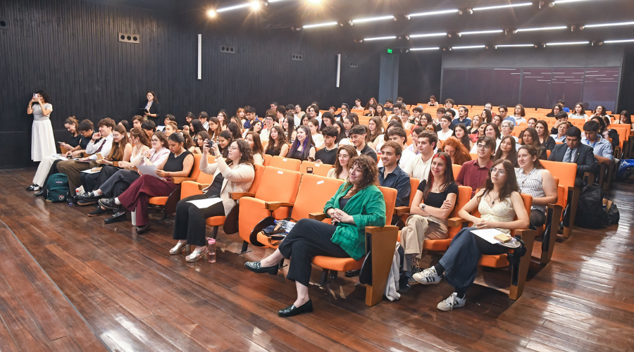 Entre esos representantes está la Presidenta del Centro de Estudiantes de Fonoaudiología, Almendra Menéndez, quien dio unas palabras en el escenario: «Lo importante viene ahora, cuando pongamos en práctica lo aprendido y transformemos lo cotidiano. Cuando decidamos participar y hacernos presentes con mayor intención. Liderar es hacerme cargo de mí, de los demás y del espacio que compartimos”.