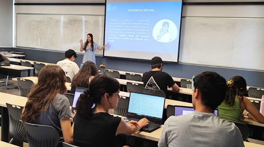 El miércoles comenzó con una presentación sobre el trabajo que realiza la Unidad de Salud Mental de la Dirección Salud y Bienestar de la DAE, sus funciones y los distintos apoyos disponibles para la comunidad estudiantil. En este contexto, se dio a conocer el Modelo Escalonado de Salud Mental.